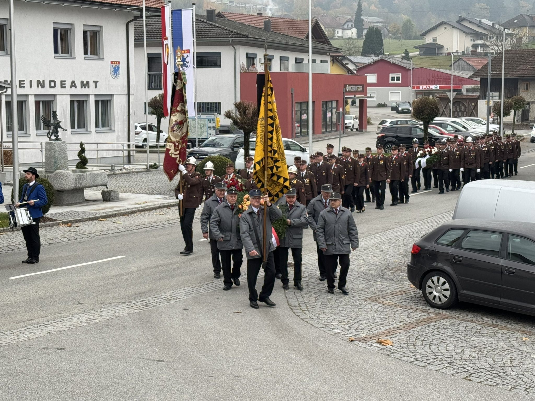 Am Sonntag, den 28. September 2025, nahmen wir gemeinsam mit der Feuerwehr Matzing am Erntedankfest in Enzenkirchen teil. Bereits zur Segnung fand ein feierlicher Umzug mit den beiden Feuerwehren und dem Musikverein Enzenkirchen statt. Anschließend zogen auch die Goldhauben, die Kindergartenkinder, die Landjugend und der Pfarrer inklusive Minstranten gemeinsam in die Kirche ein, wo der festliche Gottesdienst gefeiert wurde.